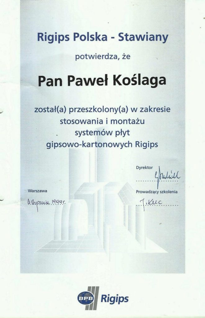 - sucha zabudowa z płyt kartonowo-gipsowych – sufity podwieszane, ścianki działowe
